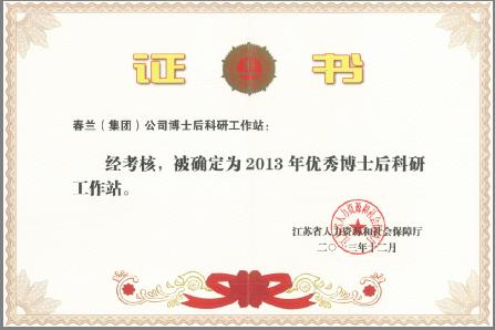 近日,從江蘇春蘭清潔能源研究院有限公司傳出喜訊,春蘭(集團(tuán))公司博士后科研工作站榮獲2013年度江蘇省 “優(yōu)秀博士后科研工作站”稱號(hào)。