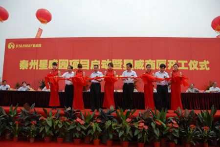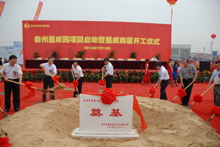 春蘭地產(chǎn)旗下的泰州星威園項目啟動暨星威商廈開工儀式于7月18日盛大舉行,中共泰州市委常委、常務(wù)副市長楊峰,泰州市政府副秘書長徐克儉,中共海陵區(qū)委副書記、區(qū)長孫耀燦,春蘭(集團)公司黨委副書記、副總裁劉勇,市區(qū)相關(guān)部門和單位負責人以及施工單位代表200余人出席了開工儀式。