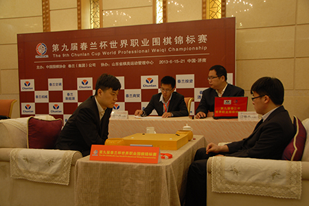 6月17日上午9:30,第九屆“春蘭杯世界職業(yè)圍棋錦標(biāo)賽”決賽在濟(jì)南市山東大廈二樓煙臺(tái)廳拉開戰(zhàn)幕。這是中國(guó)棋手陳耀燁九段與韓國(guó)棋手李世石九段爭(zhēng)奪冠軍的第一局比賽,同時(shí)也是中國(guó)棋手孔杰九段與江維杰九段角逐第三名的決賽。