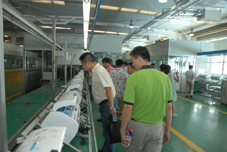 與會(huì)客戶參觀春蘭家用空調(diào)生產(chǎn)線