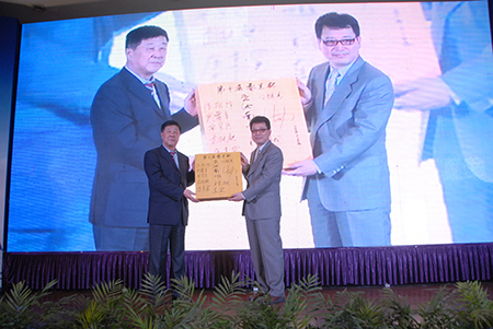 中國(guó)棋院和中國(guó)圍棋協(xié)會(huì)向春蘭集團(tuán)贈(zèng)送了一方由本屆參賽棋手簽名的棋盤