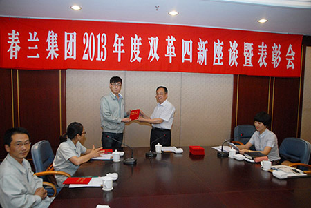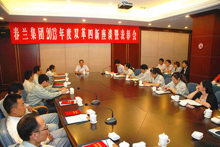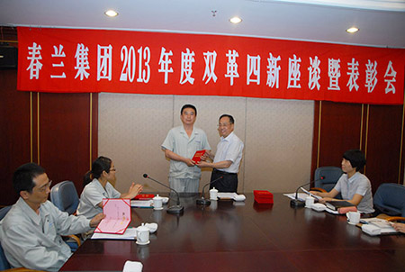2013年,春蘭旗下各單位廣泛發(fā)動員工,組織開展雙革四新、合理化建議活動。廣大員工立足崗位,熱情參與,積極“破瓶頸、解難題、立新功”,有力地推動和促進(jìn)了企業(yè)技術(shù)進(jìn)步,為集團(tuán)降本增效工作和各項經(jīng)營目標(biāo)的完成發(fā)揮了積極的作用。經(jīng)過嚴(yán)格的評定,春蘭動力制造有限公司金二車間技術(shù)組被授予“2013年度雙革四新最佳班組”稱號;春蘭空調(diào)設(shè)備有限公司品管部測試室班長徐暉、春蘭機(jī)械制造有限公司制造部機(jī)電班班長申光明被授予“2013年度雙革四新能手”稱號;春蘭制冷設(shè)備股份有限公司品管部技術(shù)組、春蘭清潔能源研究院有限公司技術(shù)部設(shè)計組、春蘭動力制造有限公司綜合車間機(jī)修班班長袁春年、春蘭清潔能源研究院有限公司副主任秦盛榮被授予“2013年度雙革四新鼓勵獎”;春蘭機(jī)械制造有限公司金工車間副主任蔡云鵬的合理化建議被評為“2013年度優(yōu)秀合理化建議”; 春蘭空調(diào)設(shè)備有限公司總裝車間維修工劉利蘇和春蘭清潔能源研究院有限公司品管部生產(chǎn)過程控制組組長王紅旗的合理化建議,被授予“2013年度合理化建議鼓勵獎”。會上,受表彰代表還就各自開展雙革四新和合理化建議活動的情況,進(jìn)行了工作介紹和經(jīng)驗交流。