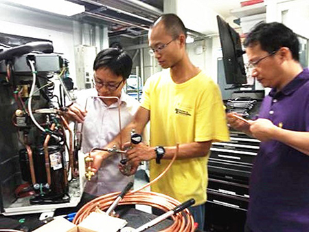 根據(jù)GEF (全球環(huán)境基金簡稱) “節(jié)能房間空調(diào)器推進項目”的安排,為了使空調(diào)器制造企業(yè)的設(shè)計人員提升有關(guān)節(jié)能空調(diào)器設(shè)計的各種技術(shù)方案,國家環(huán)?偩汁h(huán)境保護對外合作中心與中國家用電器研究院于今年春、夏、秋季,相繼舉辦三次空調(diào)器設(shè)計人員培訓(xùn)班,其中,第三次是到美國馬里蘭大學(xué)進行強化培訓(xùn)。春蘭作為中國空調(diào)器制造業(yè)中的代表性企業(yè),派出研發(fā)工程師參加了相關(guān)培訓(xùn),再度赴美“刷新”技術(shù)。