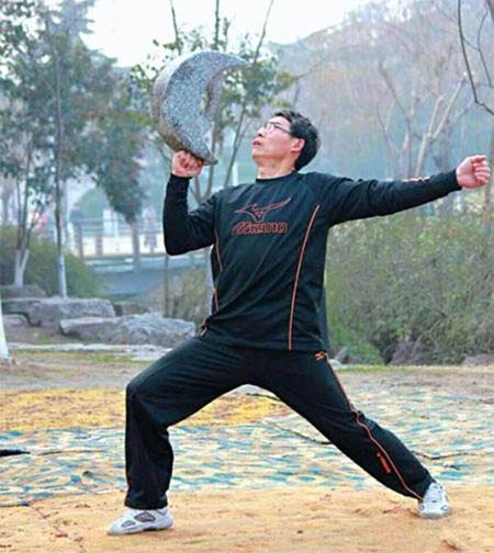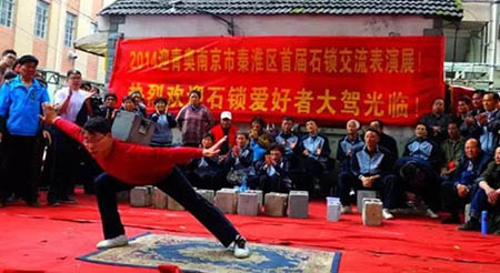 自古以來(lái),石鎖的外形都是四四方方的形狀。 而郭加林手中的石鎖與眾不同,他手中的石鎖不是笨重的鎖狀石頭,而是筍狀、五星、印章、月牙等奇形怪狀的不規(guī)則石頭。這些在一般人眼中的廢石,和郭加林的奇思妙想結(jié)合在一起后,又衍生了很多石鎖花式動(dòng)作。每次他在泰州人民公園南門西側(cè)的石鎖晨練點(diǎn)亮相,總會(huì)讓大伙眼前一亮。 郭加林和異型鎖的問(wèn)世,打破了千年鎖形的陳規(guī),近年來(lái),郭加林在華東地區(qū)、長(zhǎng)三角都市圈、江蘇民間石鎖等大賽中屢屢斬獲花樣石鎖桂冠。