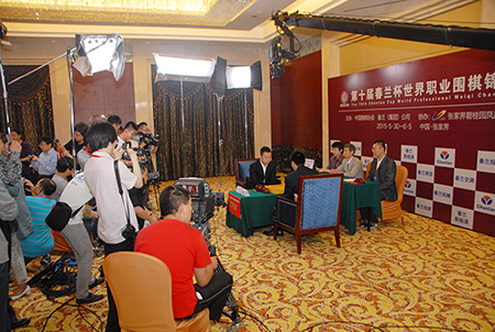 6月1日上午9:30,第十屆“‘春蘭杯’世界職業(yè)圍棋錦標(biāo)賽”決賽在張家界碧桂園鳳凰酒店愛(ài)丁堡會(huì)議廳拉開(kāi)戰(zhàn)幕。中國(guó)選手古力與周睿羊展開(kāi)冠亞軍第一輪比賽,周睿羊執(zhí)黑先行;中國(guó)棋手陳耀燁與韓國(guó)棋手金志錫展開(kāi)三、四名決戰(zhàn),陳耀燁執(zhí)黑先行。據(jù)悉,本次比賽預(yù)計(jì)至晚上六點(diǎn)左右結(jié)束,并產(chǎn)生本屆“春蘭杯”第三名和第四名。