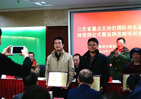 品牌國際化水平是當(dāng)今衡量一個企業(yè)綜合競爭力的重要標(biāo)志。 1月30日下午,泰州市商務(wù)局舉辦“江蘇省重點培育和發(fā)展的國際知名品牌”授牌儀式暨品牌戰(zhàn)略培訓(xùn)會,江蘇春蘭進出口有限公司總經(jīng)理高元甲代表春蘭集團上臺領(lǐng)取了獎牌。