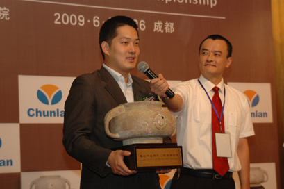 6月24日,“第七屆春蘭杯世界職業(yè)圍棋錦標賽”決賽最大的懸念在代表巴蜀文化的著名景點“武侯祠”內(nèi)揭開,中國棋手常昊九段以2︰0戰(zhàn)勝韓國棋手李昌鎬九段奪得冠軍;而24日,第三、四名的比賽結(jié)果也見分曉,孔杰九段擊敗周鶴洋九段位列第三,周鶴洋則居第四。決賽結(jié)束后,主辦方舉行了隆重的頒獎儀式,四川省副省長陳文華、春蘭集團副總裁劉亞夫、中國圍棋協(xié)會副主席華以剛、成都市體育局局長覃文林、中國圍棋協(xié)會副秘書長王誼等出席了頒獎儀式,并為獲得本屆春蘭杯的冠亞軍及三、四名棋手頒發(fā)了獎杯和獎金。 據(jù)介紹,第七屆“春蘭杯世界職業(yè)圍棋錦標賽”于2008年3月13日在浙江省杭州棋院揭開戰(zhàn)幕;同年12月9日,八強賽和半決賽在江西省南昌滕王閣點燃烽火;2009年6月22日至25日,決賽在成都打響,最后圓滿落幕。 據(jù)了解,新浪網(wǎng)專設(shè)網(wǎng)頁同步直播了本次比賽的對局和棋譜,搜狐網(wǎng)、TOM網(wǎng)、中國圍棋網(wǎng)、春蘭集團網(wǎng)等網(wǎng)站,也轉(zhuǎn)播了本次比賽的棋譜,并提供了相關(guān)圖片新聞和視頻報道。另外,本次春蘭杯比賽的部分精彩對局,均于比賽當(dāng)天下午4時在成都錦江賓館錦江廳,由中國圍棋協(xié)會副主席華以剛八段與棋界最佳講棋搭檔徐瑩五段進行了掛盤講解,約800人次到場觀棋。講解結(jié)束前,參賽棋手到講棋現(xiàn)場與棋友見了面,其互動場面非常熱烈。 另悉,為使更多的人了解、關(guān)注、支持和傳播“春蘭杯”,主辦方還在講棋現(xiàn)場舉辦了“幸運棋迷”抽獎活動,新浪網(wǎng)還在比賽前開展了春蘭杯有獎競猜等活動。(肖習(xí))