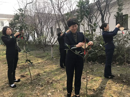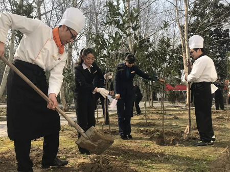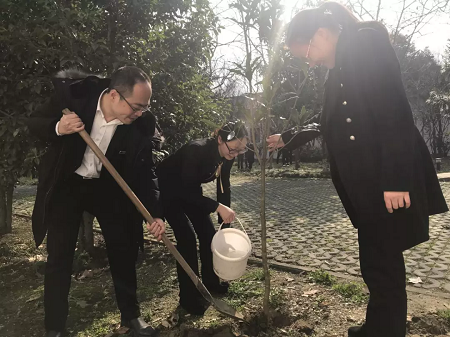 3月12日下午,泰州賓館全體黨員、管理人員和部分認(rèn)養(yǎng)小樹苗的公眾號(hào)粉絲匯聚風(fēng)景秀麗的春蘭國(guó)賓館開展植樹活動(dòng);顒(dòng)中,大家三、四人一組,有挖坑的,有扶樹苗的,有填土的,還有提著水桶來(lái)回澆水的,干得熱火朝天。